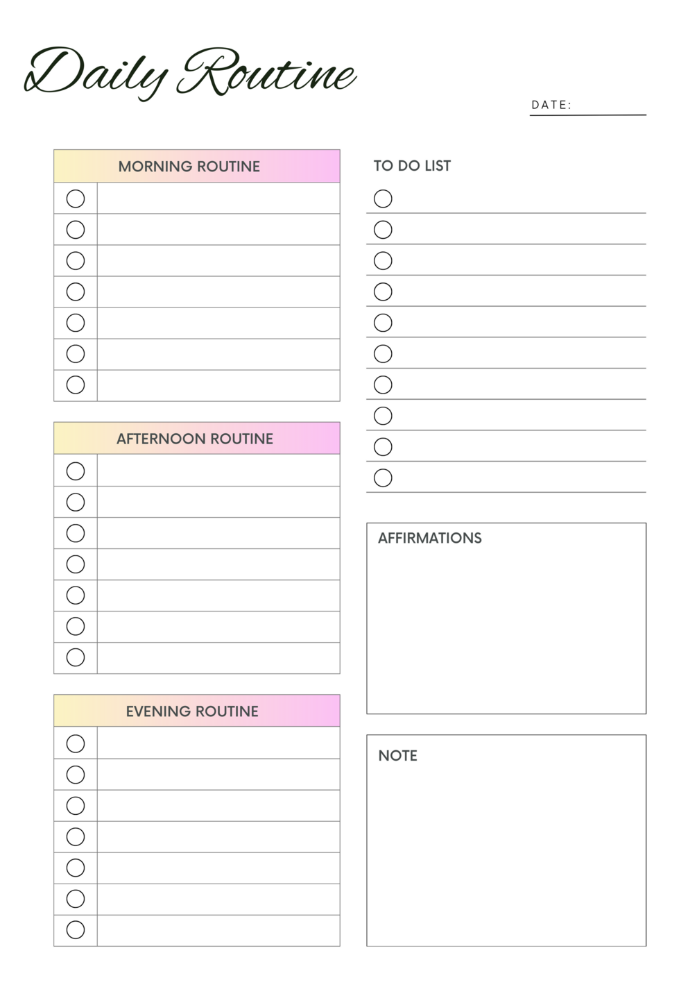 Introducing our Digital Minimal Daily Routine Chart, a modern solution for organizing your day with ease and positivity. This digital tool combines simplicity with functionality to help you stay focused, motivated, and on track .